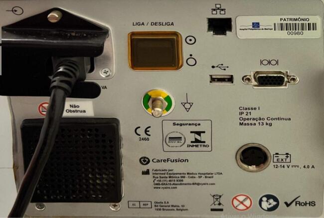 2. VENTILADOR pulmonar mecânico, marca VYAIRE, número de série IX5-2019-04-07340, modelo IX5, em perfeito estado de conservação. Avaliado em R$ 55.000,00 (cinquenta e cinco mil reais).