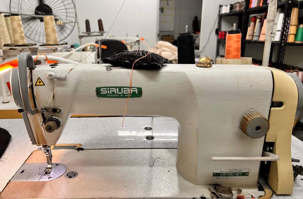 Observação: 10) Uma máquina de costura reta, marca Siruba, modelo L818D-M1, com número de série ilegível. Avaliada em R$ 1.300,00 (mil e trezentos reais).