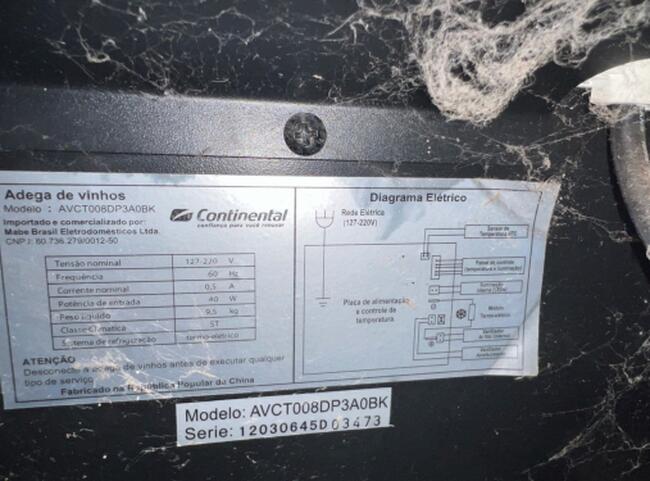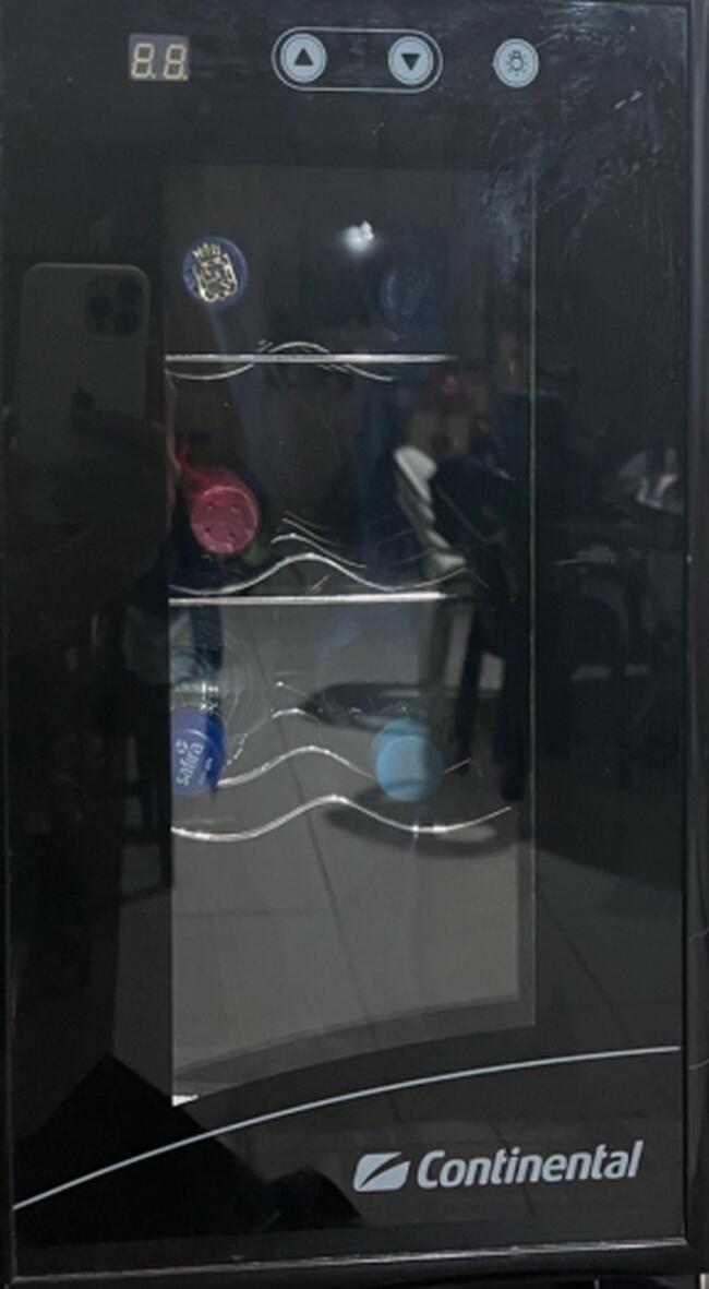 Observação: 01 Adega de vinhos Continental para seis garrafas, modelo AVCT008DP3A0BK, em bom estado e em funcionamento