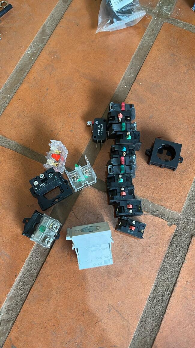 comando duplo e simples, seletores rotativos e blocos de contato. Marcas de referência