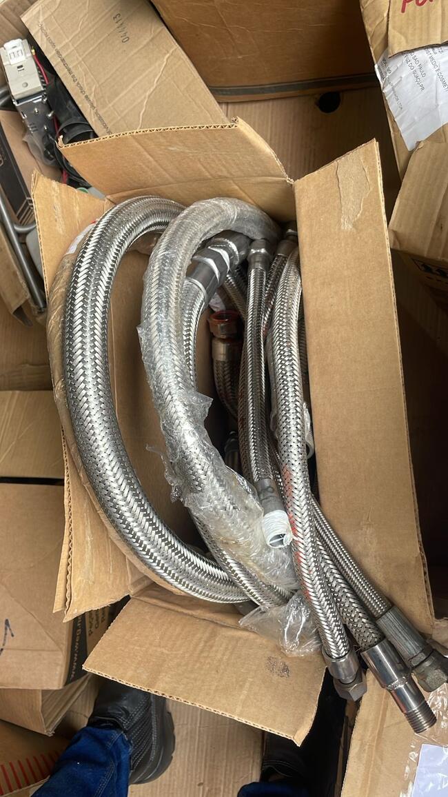 flexíveis em aço inox (braidados) de diversos diâmetros e 03 unidades de mangueiras