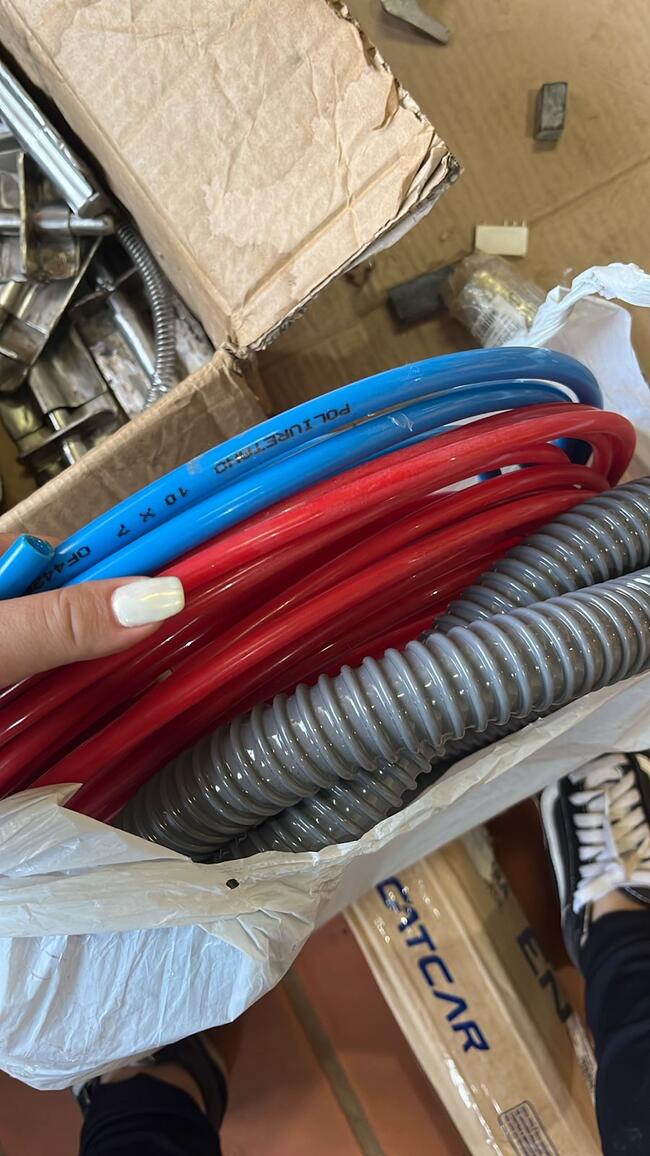 técnicas, sendo: 05m de mangueira pneumática azul (10x7mm), 20m de mangueira vermelha
