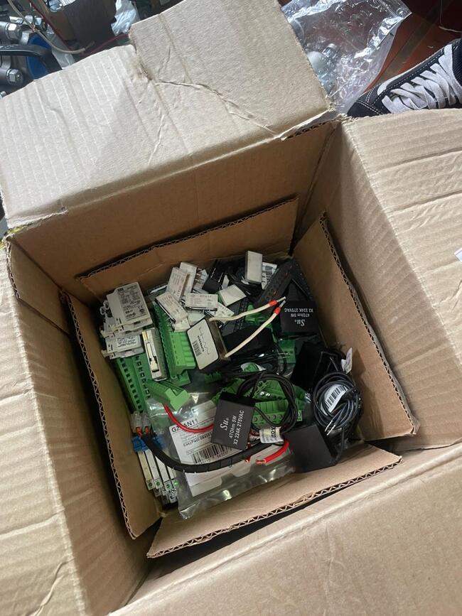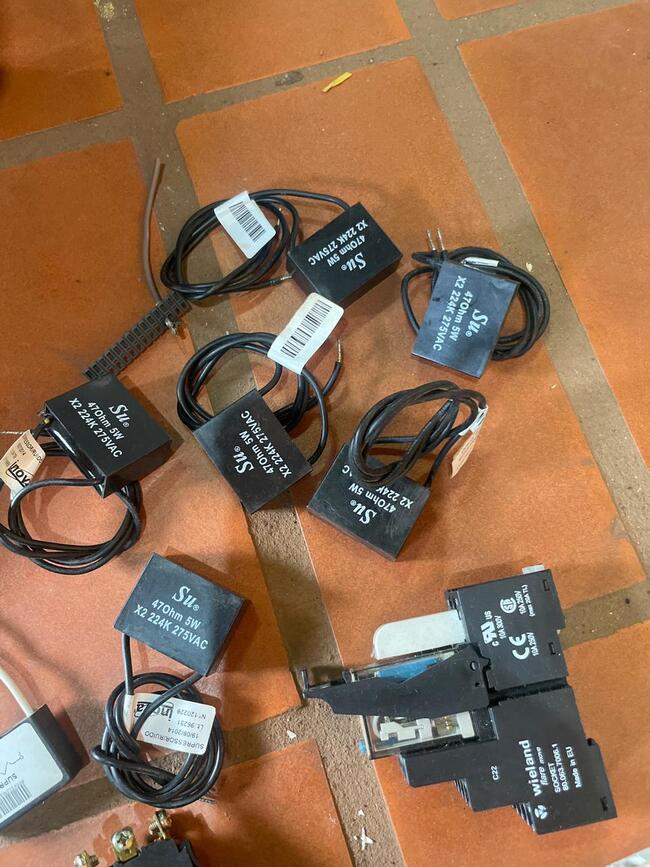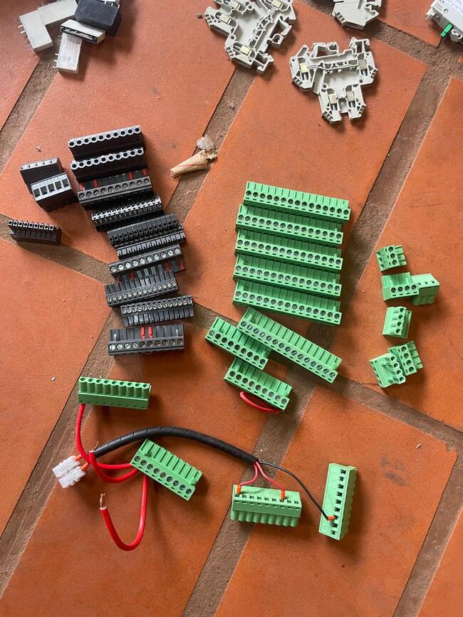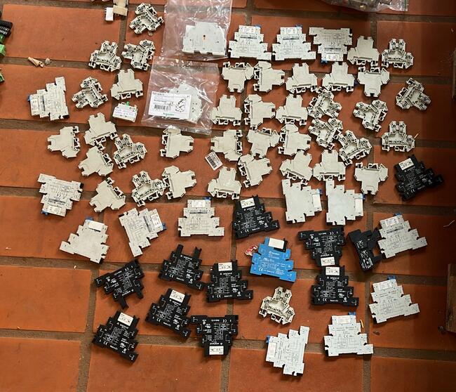 bases de relé (Wieland, Finder) e grande volume de bornes de conexão (Cabur, Wieland).