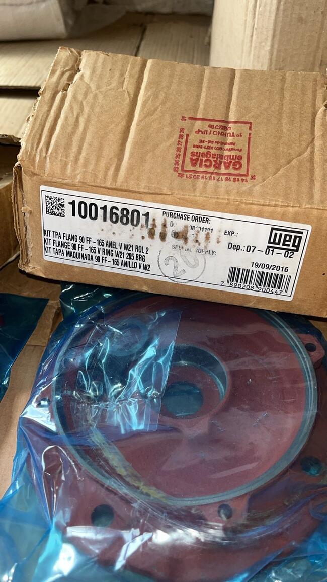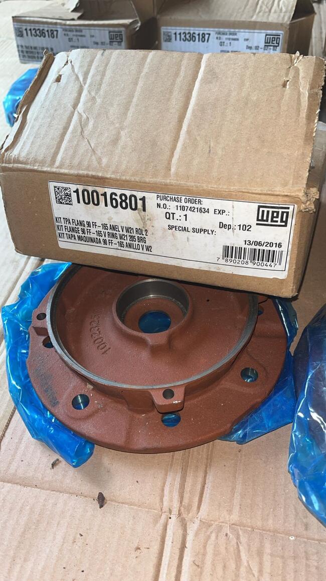 tampas originaisWEG, sendo03 tampas maquinadas (modeloFlange 90 FF-165) e 02 tampas