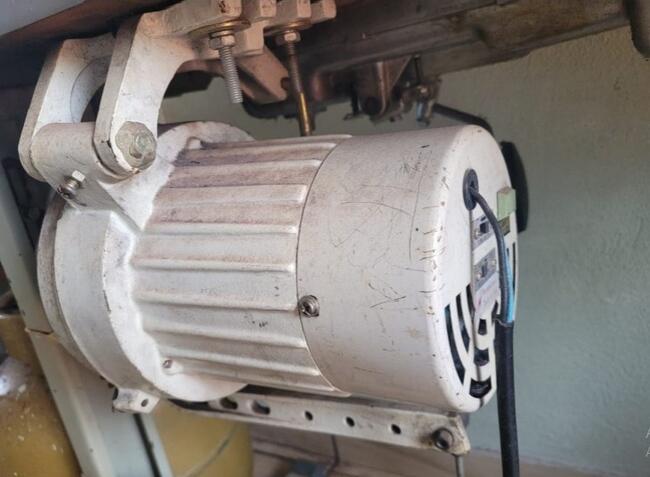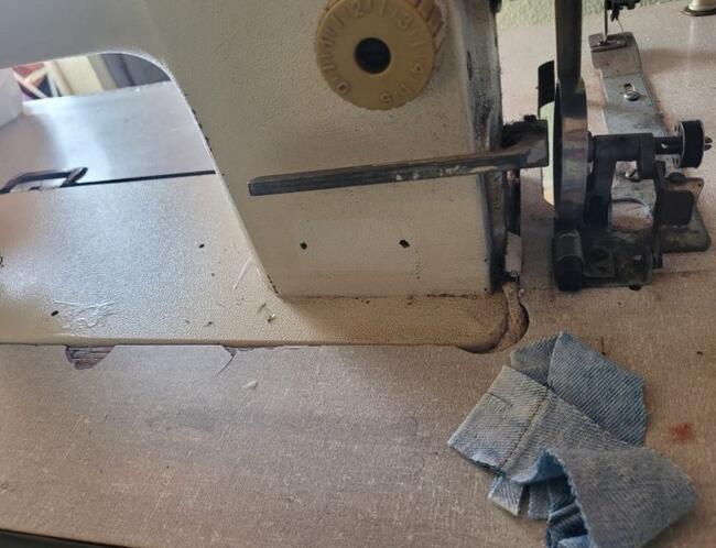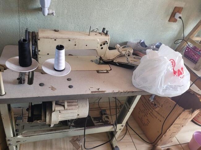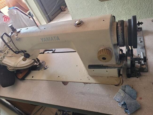 Observação: 01 Máquina de costura reta, marca Yamata, sem plaqueta de identificação, com motor, mesa de apoio, usada, em funcionamento.
