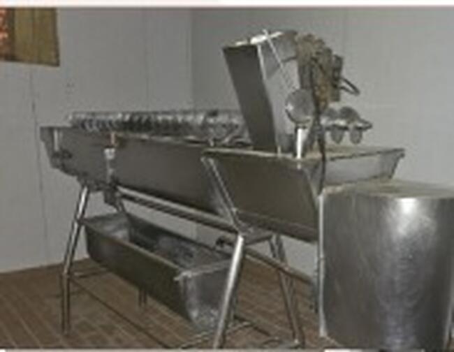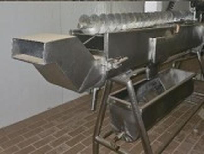 Observação: 20) Filadeira industrial monobloco para massa de muçarela, em aço inox, com helicoide, tremonha e estrutura elevada. Capacidade estimada: até 1.000 kg/h. Apresenta desgaste e pontos de ferrugem. Equipamento não testado. Estado: regular;