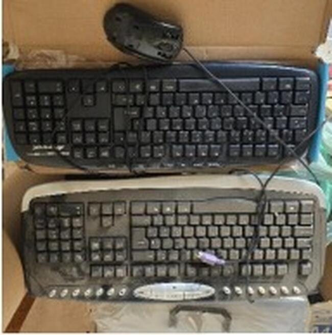 Observação: 64) 2 teclados e 01 mouse com fio, modelos antigos, em plástico rígido, com sinais de uso intenso e poeira acumulada. Não foram testados, sendo incerta sua funcionalidade;