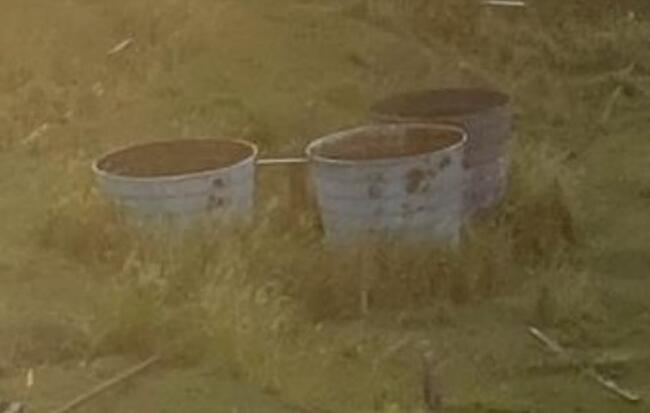 Observação: 68) 3 Tanques cilíndricos metálicos em chapa galvanizada, com sinais de ferrugem e exposição prolongada ao tempo, e 1 (um) reservatório plástico da marca Fibratec, de grande porte, próprio para armazenamento de água ou líquidos diversos, com sinais de uso e sem tampa visível. A capacidade dos reservatórios não foi identificada, sendo estimada visualmente como de grande volume. Não houve teste de estanqueidade;