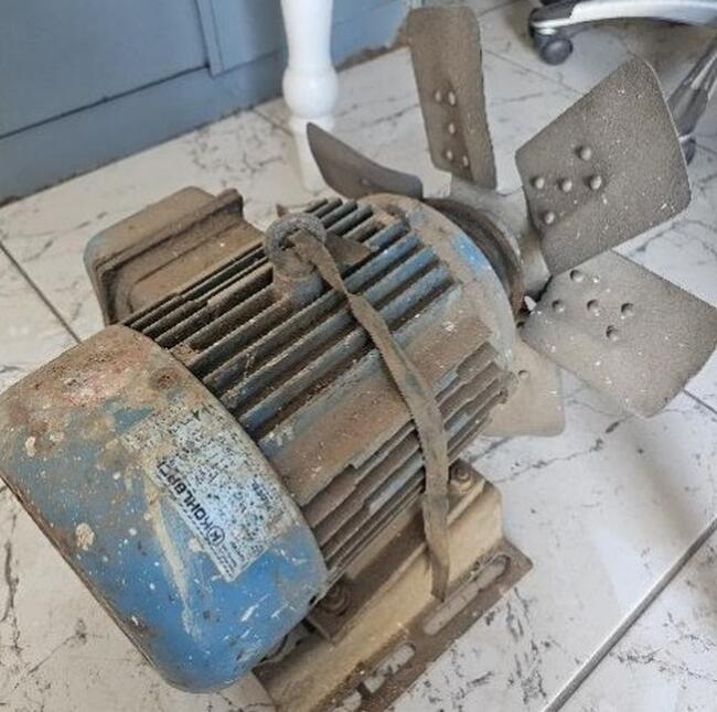 Observação: 75) Motor de indução trifásico de gaiola, marca Kohler Bcch, modelo 112M, potência de 7,5 CV, 1750 RPM, 220/380/440V, IP56, com ventoinha acoplada. Apresenta sujeira acumulada, sinais de oxidação e ausência de teste de funcionamento;