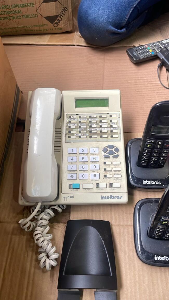 nobreak NHS Mini II, 02 monitores Dell, 06 aparelhos telefônicos Intelbras (01 digital TI 730i e