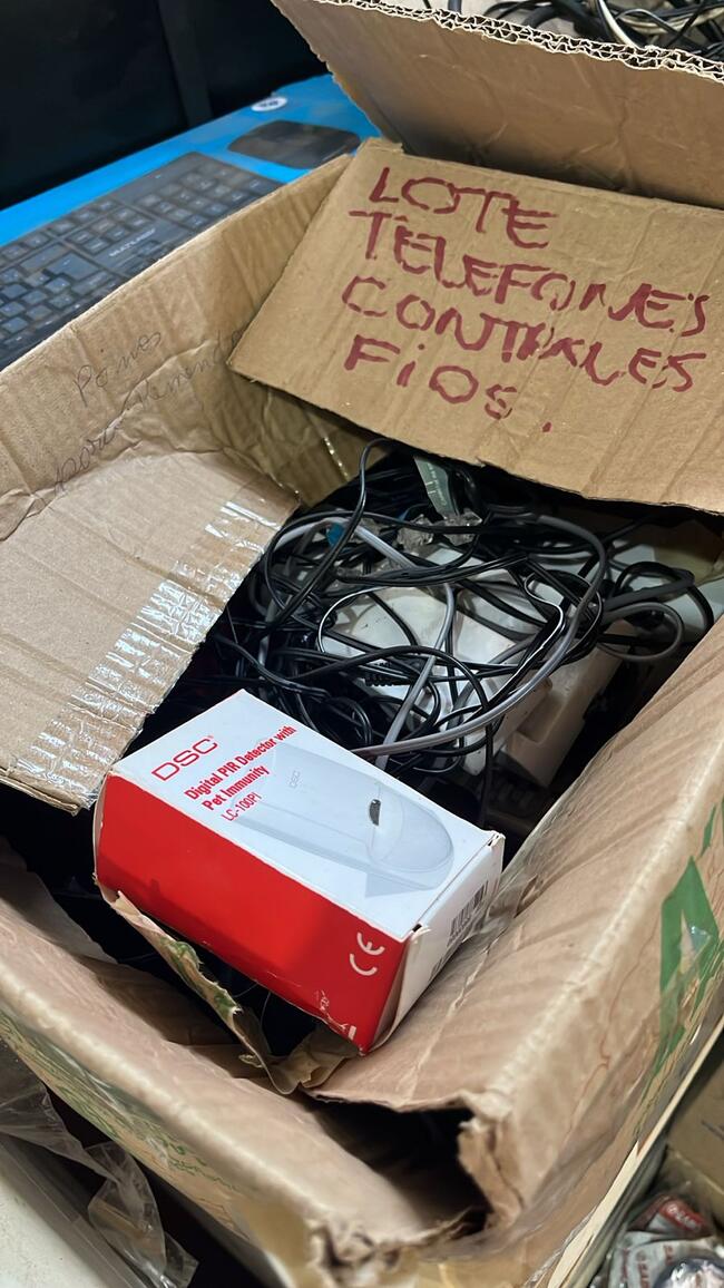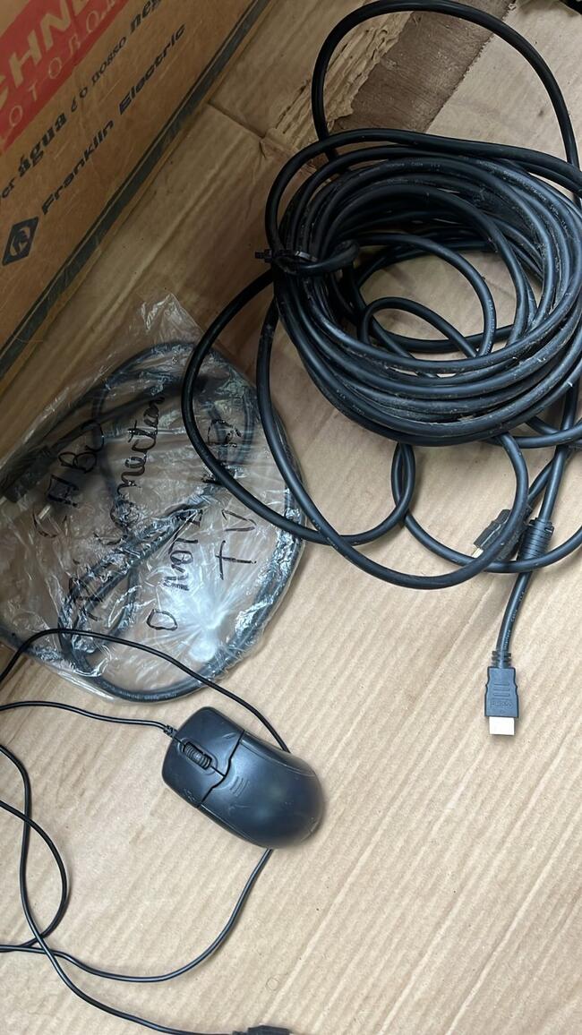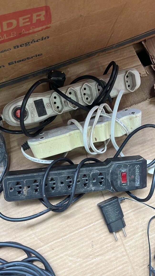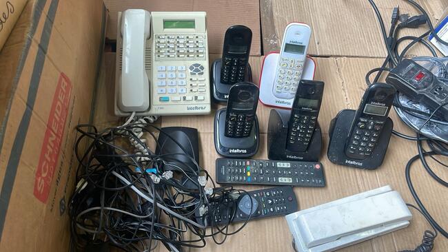 HDMI e cabos de alimentaçãodiversos. Obs: Conservaçãomediada. Itens nãotestados; risco de baterias exauridas (nobreak e telefones sem fio) e ausência de cabos/receptores