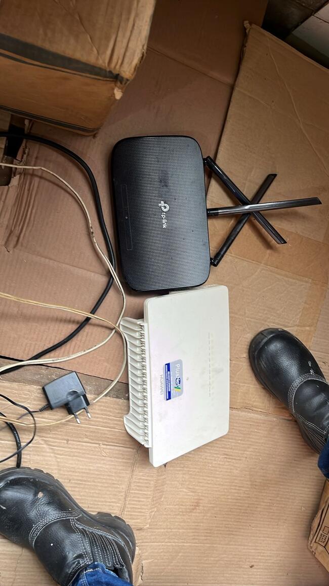 05 sem fio com bases), 02 modems/roteadores, 03 réguas de energia, 01 mouse, 01 cabo