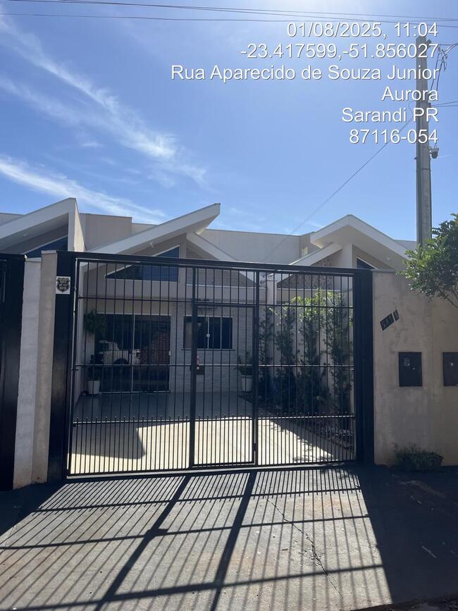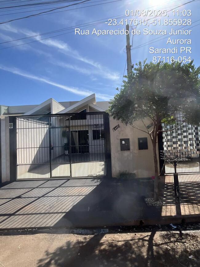 SARANDI/PR - Casa, 69,35 m2 de área total, 69,35 m2 de área privativa, 128,5m2 de área do terreno, 3 qts, a.serv, 2 WCs, sl, cozinha, 1 vaga de garagem. IPTU: 444282 Matrícula: 48729 Ofício: 1. COND RES ALESSANDRO SILVA VII RUA APARECIDO DE SOUZA JUNIOR N. 541, A, LT 29 QD 19 JARDIM AURORA LL