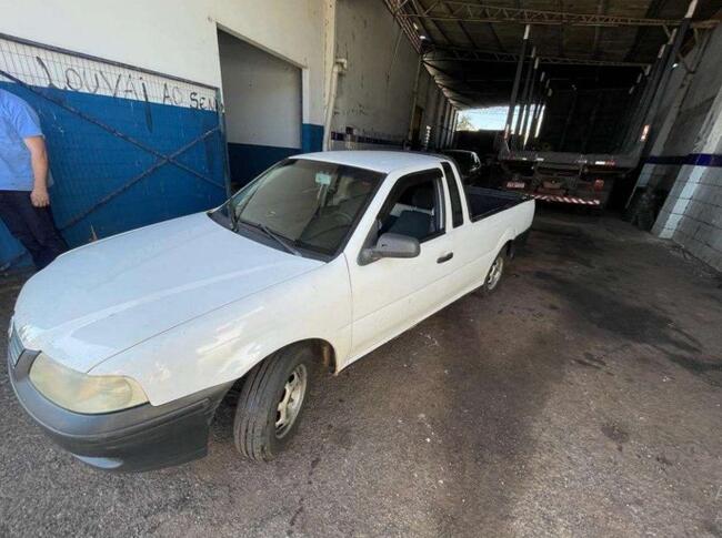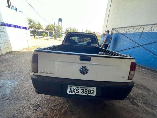 Observação: (01) Veículo Volkswagen Saveiro 1.6, ano 2002, modelo 2003, movido à álcool, cor branca, código Renavam 00798462736, placa AKS-3882, com 793.000 km rodados em 13/07/2023, com lataria e pintura em estado regular de conservação, com interior em estado regular de conservação, com parabrisa trincado, com pneus "meia vida", em funcionamento aparentemente normal;