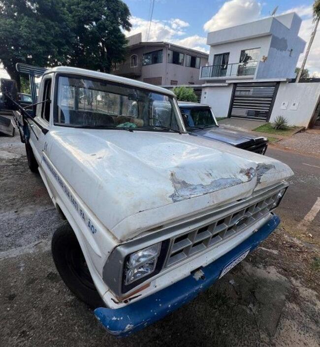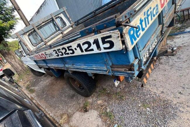 Observação: Caminhonete Ford/F2000, Placa AFE 6B65, ano 1981, modelo 1981, código Renavam 0051 3947787, cor branca, movida à diesel, com 4 pneus "meia vida", com estepe "meia vida", com capo amassado, com carroceria de madeira, com interior em regular estado de conservação, com funcioamento aparentemente normal.