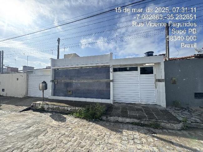 SAPE/PB - Casa, 52 m2 de área total, 52 m2 de área privativa, 151,2m2 de área do terreno, 2 qts, 2 WCs, 2 sls, cozinha, terraco, 1 vaga de garagem. IPTU: 169331 Matrícula: 9132 Ofício: 1. LT PQ DOS COQUEIROS RUA PROJETADA N. 274, LT 10C QD F R JOSE KELTON PEREIRA GOMES PARQUE DOS COQUEIROS